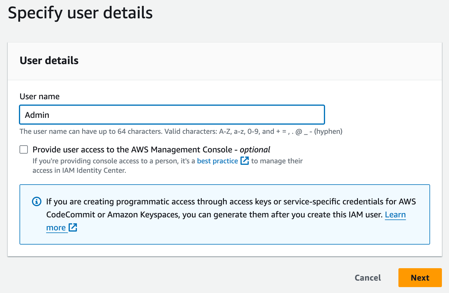 Create your IAM user